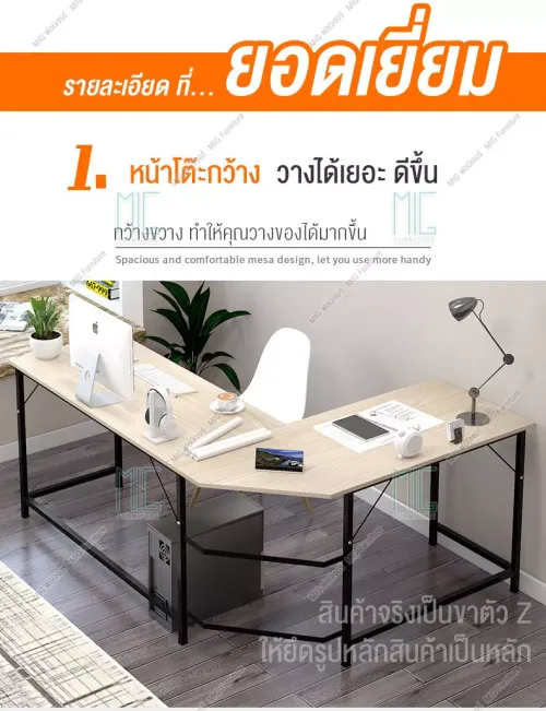 ชุดโต๊ะทำงานเข้ามุม โต๊ะทำงาน วางคอมพิวเตอร์ โต๊ะคอม โต๊ะไม้ L-shape working desk สีดำ (110-120)*48*73