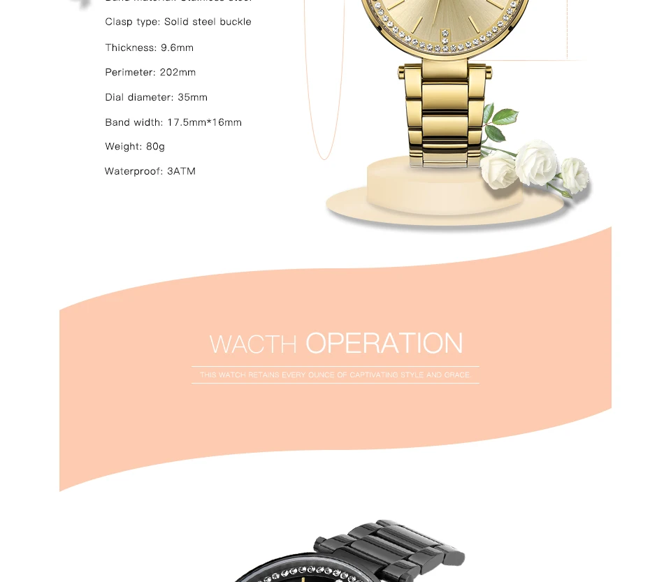 - Quality Zinc Alloy Gold / Rose Gold / Silver / Black Case;