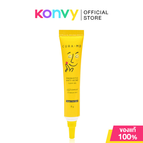 Cura-MD Prebiotic Anti-Acne Clear Gel 8g เจลแต้มสิว ด้วยส่วนผสมของ 2% Salicylic Acid และ Prebiotic ที่ลดการอักเสบ บวมแดง และลดเชื้อแบคทีเรีย C.Acne สาเหตุการเกิดสิว ผสานการทำงานร่วมกับ AC0 Complex เอกสิทธิ์เฉพาะของ CURA-MD ช่วยลดความมันในร่องรูขุมขน ฟื้นบำรุงผิวให้กลับมาเรียบเนียนใส ป้องกันการเกิดสิวซ้ำ ลดการเกิดรอยดำ รอยแดงจากสิว
