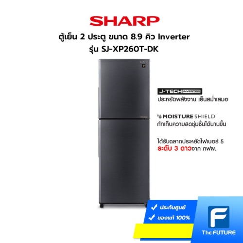 SHARP ตู้เย็น 2 ประตู รุ่น SJ-XP260T-DK ขนาด 8.9 คิว สีเดำด้าน ระบบ Inverter (ประกันคอมเพรสเซอร์ 10 ปี)