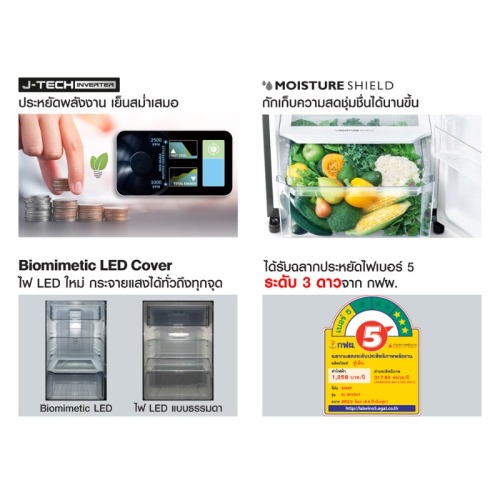- ได้รับฉลากประหยัดไฟเบอร์ 5 ระดับ 3 ดาว จาก กฟผ.