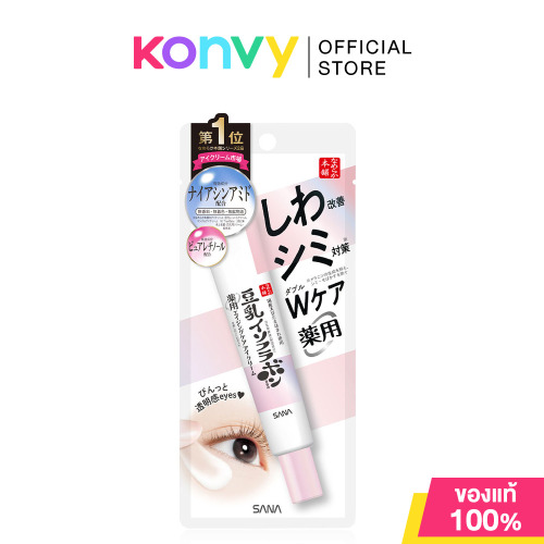 Sana Namerakahonpo Brightening & Wrinkle Eye Cream 20g ครีมบำรุงผิวรอบดวงตา ช่วยดูแลผิวแห่งวัย ให้ผิวรอบดวงตาดูกระจ่างใส จัดการกับริ้วรอยและรอยดำ ลดการสร้างเม็ดสีเมลานิน ป้องกันการเกิดรอยดำและกระ บำรุงผิวให้กระชับแวววาว คงความชุ่มชื้นสูง ช่วยบำรุงผิวแห้ง เพื่อผิวรอบดวงตาดูอิ่มฟู ประกอบด้วยสารไอโซฟลาโวนจากนมถั่วเหลืองหมักที่สกัดจากถั่วเหลืองสายพันธุ์ TAMAHOMARE, ไนอะซินาไมด์ และเรตินอลบริสุทธิ์