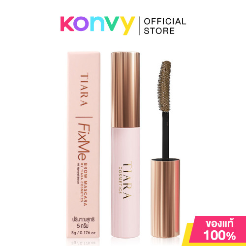 TIARA BEAUTY FixMe Brow Mascara 5g #01 Natural Brown มาสคาร่าปัดขนคิ้ว ล็อกคิ้วตั้งฟู เป็นไฟเบอร์สูตรพิเศษเฉพาะ TIARA ช่วยสร้างมิติให้ขนคิ้วแลดูเข้มขึ้น สร้างขนคิ้วเรียงเป็นเส้นเสมือนจริงดูเป็นธรรมชาติ พร้อมด้วยหัวแปรงดีไซน์ใหม่ ขนแปรง 2 ระดับ ด้านขนแปรงสั้น เหมาะกับขนคิ้วยาว ช่วยแผ่กระจายเส้นคิ้วให้ตั้งฟูสวย ด้านขนแปรงยาว เหมาะกับขนคิ้วสั้น ช่วยจัดระเบียบเส้นคิ้วให้เรียงสวยอยู่ทรง มีส่วนผสมของ VITAMIN NOURISHING โปรวิตามินบี 5 ช่วยให้ความชุ่มชื้น เพิ่มความยืดหยุ่น และช่วยลดการหลุดร่วงของเส้นคิ้ว