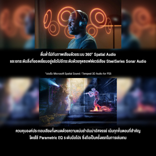 หูฟังเกมมิ่งแบบมีสายที่เข้าถึงระดับเสียงอันทรงพลังด้วยระบบเสียง Nova Pro และไดรเวอร์ High Fidelity ระดับพรีเมี่ยมที่ได้รับการปรับปรุงด้วย Sonar Software มาพร้อม GameDAC Gen 2 ที่ยกระดับเสียงให้ชัดเจนและละเอียดขึ้น 78%* (เมื่อเปรียบเทียบกับ GameDAC Gen 1) พร้อมความผิดเพี้ยนที่น้อยลง เพื่อคุณภาพเสียงที่ไม่เคยได้ยินในหูฟังสำหรับเล่นเกมอื่น ๆ รองรับระบบเสียง 360° Spatial Audio* (เข้ากันได้อย่างสมบูรณ์กับเสียง Tempest 3D สำหรับ PS5 / Microsoft Spatial Sound) การเชื่อมต่อแบบ Multi-System เปลี่ยน GameDAC ให้เป็นฮับที่ให้คุณสลับระหว่างแพลตฟอร์มได้ด้วยการกดปุ่มเพียงปุ่มเดียว รองรับ Xbox, PC, Mac, PlayStation หรือ Switch และมีไมโครโฟนตัดเสียงรบกวน ClearCast Gen 2 ที่ขับเคลื่อนด้วย AI ออกแบบไมโครโฟนให้ยืดหดได้สะดวกในการใช้งาน หูฟังระบบ ComfortMax ที่ครอบหูแบบหมุนได้ ปรับความสูงได้ แถบกันสะเทือนแบบยืดหยุ่น ช่วยให้สวมใส่สบาย รองรับแอปขั้นเทพ SteelSeries GG