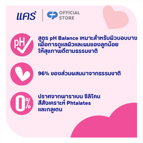 ● pH Balance เหมาะสําหรับผิวบออบบาง เพื่อการดูเเลผิวลูกน้อยให้สุขภาพดีตามธรรมชาติ