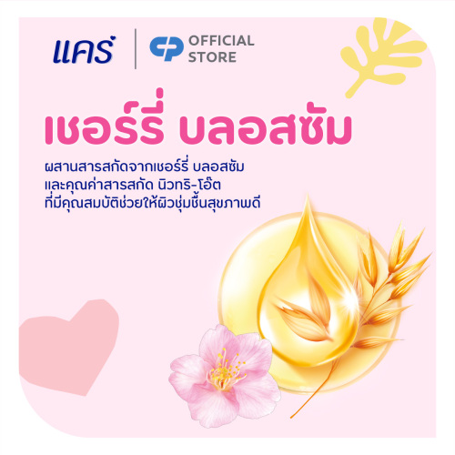 ● ผสานคุณค่าสารสกัด นิวทริ-โอ๊ต ที่มีคุณสมบัติช่วยให้ผิวชุ่มชื้นสุขภาพดี เเละสารสกัดจากเชอรรี่ บลอสซัม