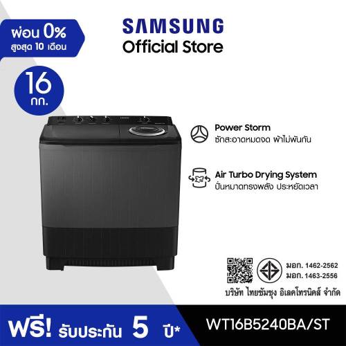 Product Details Reviews (0) Add to Cart Home Product Details Samsung เครื่องซักผ้า 2 ถัง รุ่น WT16B5240BA/ST ขนาด 16 กก. ดำ One 5.0/ 5 Samsung เครื่องซักผ้า 2 ถัง รุ่น WT16B5240BA/ST ขนาด 16 กก. ดำ One ฿ 8,339.00 13,163.00 37%off Tcoin Earn up to Tcoins Tcoins can be used as a deduction for the next purchase of Thisshop product; the received Tcoins will be calculated based on the actual payment amount. Ship to Province City Area Shipping Quantity Add to Cart Buy Now TPayLater Product Details Reviews (0) Samsung ซัมซุง เครื่องซักผ้า 2 ถัง รุ่น WT16B5240BA/ST พร้อมด้วย Air Turboขนาด 16 กก. After Sale Support