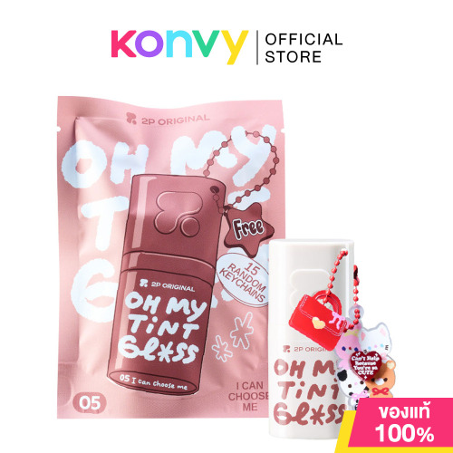 2P Original Oh My Tint Gloss 3g #05 I Can Choose Me ลิปกลูโคสปากสวยระดับโมเลกุล เพียงแค่ทาลิป ก็เหมือนเติมความสุขให้กับคุณทุกวัน ให้คุณมีริมฝีปากที่สวยโดดเด่น เนื้อลิปบางเบา สีชัดเจน พร้อมเพิ่มความฉ่ำวาวให้ริมฝีปาก และติดทนนาน พร้อมทิ้งสเตนสีแน่นๆ ไม่ต้องกังวลเรื่องสีหลุดระหว่างวัน มีส่วนผสมของกรดไฮยาลูรอนิคช่วยให้ร่องปากดูตื้นขึ้น ผสานวิตามินอี ให้ริมฝีปากดูเรียบเนียน สดใส และสุขภาพดี แพ็คเกจสุดน่ารักที่ไม่เหมือนใคร มาในซองที่ออกแบบให้ดูเหมือนซองขนมหรือซองลูกกวาด ให้ความรู้สึกแปลกใหม่และสดใส ภายในซองมีพวงกุญแจลายสุดคิ้วท์ ให้สะสมถึง 15 แบบแต่ละชิ้นได้รับแรงบันดาลใจจากสิ่งเล็กๆ ที่เรารักในชีวิตประจำวันเติมความสดใสให้ทุกวันดูพิเศษ สามารถใช้เป็นเครื่องประดับติดกระเป๋าได้ทุกที่ มอบรอยยิ้มในทุกการเดินทางของชีวิต