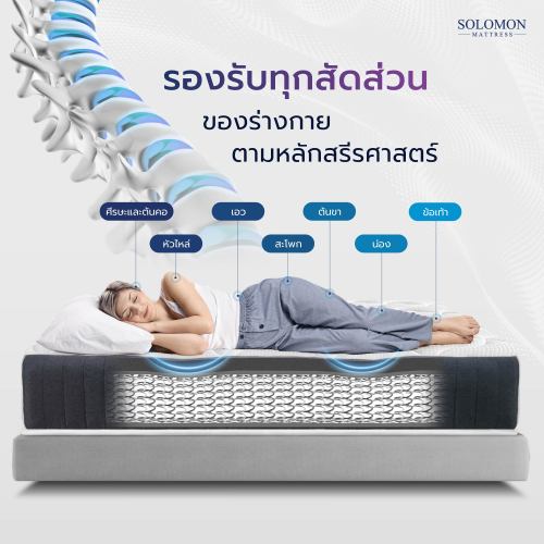 ที่นอนสปริงที่หุ้มด้วย Feature Soft Fabric สัมผัสนุ่มสบายผิว ระบายอากาศได้ดี และช่วยยับยั้งแบคทีเรียที่มีความหนาถึง 9 นิ้ว มาพร้อมความพิเศษด้วยการผลิตเพื่อให้ รองรับสรีระและกระจายน้ำหนักลงสู่ที่นอนได้ทั่วทั้งหลัง ยกระดับการนอนด้วย ขดลวดสปริงอัจฉริยะ Offset Spring คุณภาพสูง เสริมด้วย felt Box คุณภาพนำเข้า สามารถรองรับสรีระได้อย่างสมดุล และยังช่วยป้องกันไม่ให้สปริงผิดรูปจากการเคลื่อนไหว ป้องกันและรักษาอายุการใช้งานได้ต่อเนื่องอย่างยาวนาน