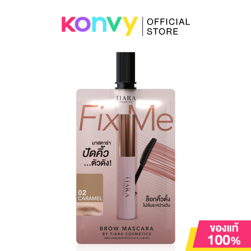 TIARA BEAUTY FixMe Brow Mascara 2g #02 Caramel มาสคาร่าปัดคิ้ว ล็อคคิ้วตั้งฟู ด้วยนวัตกรรม Double Film Setting ฟิล์มเซทคิ้วติดทนได้อย่างเป็นธรรมชาติ มีประสิทธิภาพกันน้ำสูง ยืดหยุ่นได้ดี ไม่แข็งทื่อ ไม่เป็นขุย ไม่ก่อให้เกิดคราบขาว