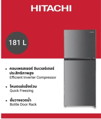 รายละเอียดสินค้า Hitachi ตู้เย็น 2 ประตู ระบบอินเวอร์เตอร์ ขนาด 6.4 คิว รุ่น HRTN5198MXTH