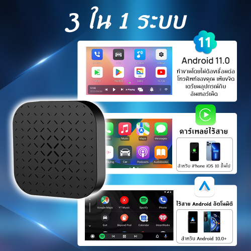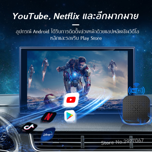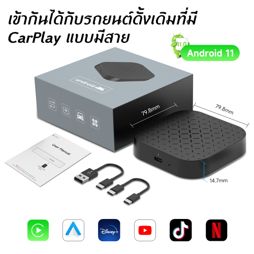 อุปกรณ์ Android ที่จะให้เราเข้าถึงแอพบนสมาร์ทโฟนและเมนสตรีม เช่น Youtube, Netflix, Iptv, Disney และอื่นๆ เปลี่ยนอุปกรณ์มัลติมีเดียธรรมดาๆ ให้กลายเป็นระบบ Android นอกจากนี้ยังเป็นอะแดปเตอร์ CarPlay หรือ Android Auto ไร้สายที่ดีซึ่งมีดีไซน์กะทัดรัด