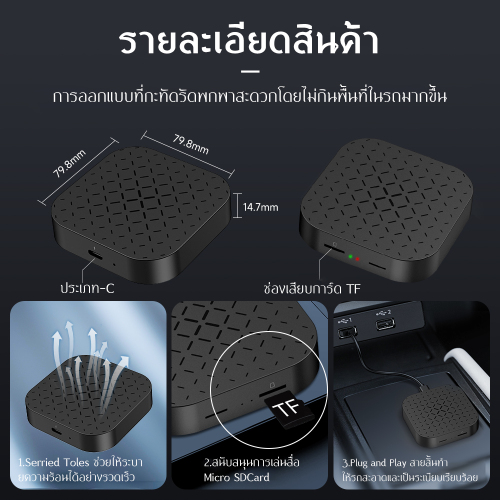 ไม่แนะนำสำหรับรถยนต์ที่มี Carplay ทั้งแบบมีสายและไร้สาย เนื่องจากความเข้ากันได้ไม่ดี