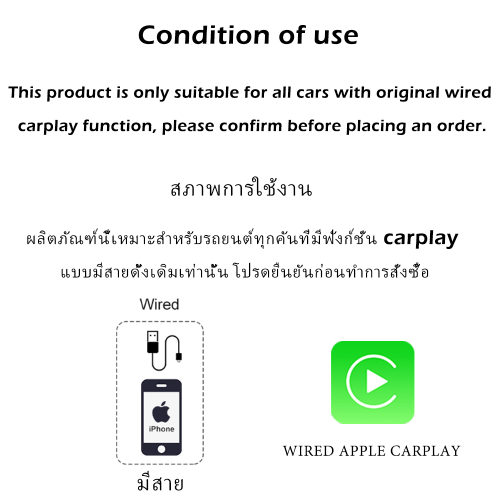 ผลิตภัณฑ์นี้เหมาะสำหรับรถยนต์ที่มี Carplay แบบมีสาย USB ดั้งเดิมเท่านั้น