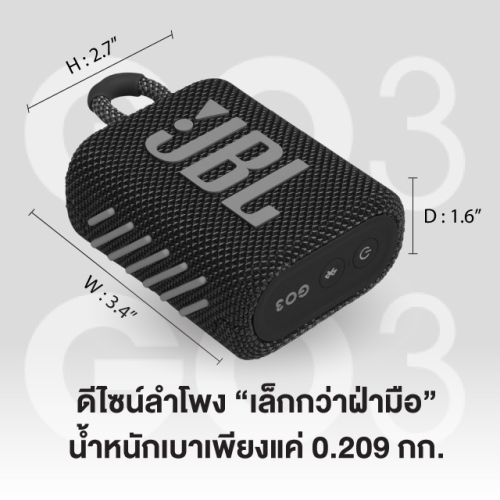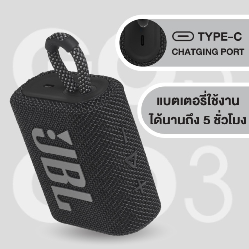 Product Details Reviews (0) Add to Cart Home Product Details JBL ลำโพงบลูทูธ Go3 Black One 5.0/ 5 JBL ลำโพงบลูทูธ Go3 Black One ฿ 1,229.00 1,967.00 38%off Tcoin Earn up to Tcoins Tcoins can be used as a deduction for the next purchase of Thisshop product; the received Tcoins will be calculated based on the actual payment amount. Ship to Province City Area Shipping Quantity Add to Cart Buy Now TPayLater Product Details Reviews (0) JBL Go3GO3 ลำโพงบลูทูธกันน้ำ ดีไซน์โดดเด่น พร้อมพกพาสะดวกยิ่งขึ้น After Sale Support