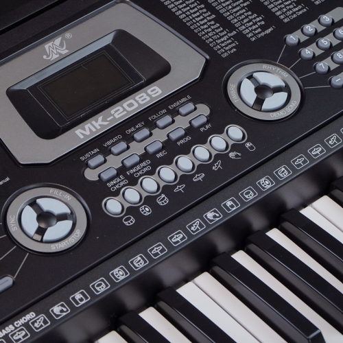 Keyboard MK-2089 61 Keys คีย์บอร์ดรุ่นล่าสุด มี 61 คีย์มาตรฐาน ซาวด์สเตอริโอ เพิ่มเสียงเปียโนชนิดต่างๆ มีฟังก์ชั่นครบครัน พร้อมกลองต่างๆ เลือกเสียงอุปกรณ์ดนตรี เช่น เปียโน ไวโอลิน ฟลุ๊ต ขิม กีตาร์ และสามารถเลือกจังหวะที่ต้องการได้ มีฟังก์ชั่น อื่นๆ มากมาย เพิ่มความสามารถต่อขยายภายนอกแบบระบบสเตริโอ ออกแบบใหม่ให้ใช้