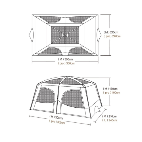 ขนาดภายนอกเต็นท์ : 370x250x200 cm.