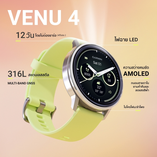 Garmin Venu 4 series นาฬิกาสมาร์ทวอทช์ รับประกันศูนย์ไทย 2 ปี 41mmSilverPeriwinkle