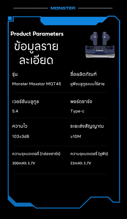 ความจุแบตเตอรี่หูฟัง : 33mAh