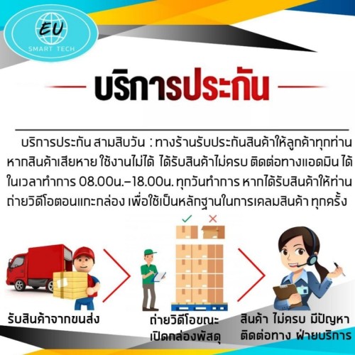 การรับประกันสินค้าบริการประกัน สามสิบวัน ทางร้านรับประกันสินค้าให้ลูกค้าทุกท่าน หากสินค้าเสียหาย ใช้งานไม่ได้ ได้รับสินค้าไม่ครบ ติดต่อทางแอดมิน ได้ ในเวลาทำการ 08.00น.-18.00น. ทุกวันทำการ หากได้รับสินค้าให้ท่านถ่ายวิดีโอตอนแกะกล่อง เพือใช้เป็นหลักฐานในการเคลมสินค้า ทุกครั้ง