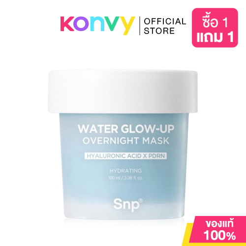 SNP Water Glow-Up Overnight Mask 100ml สลีปปิ้งมาสก์สูตรเพื่อผิวแห้งขาดน้ำ ช่วยเติมความชุ่มชื้น และฟื้นฟูผิวอ่อนล้าในช่วงพักผ่อน เผยผิวเนียนนุ่ม อิ่มฟู สุขภาพดี