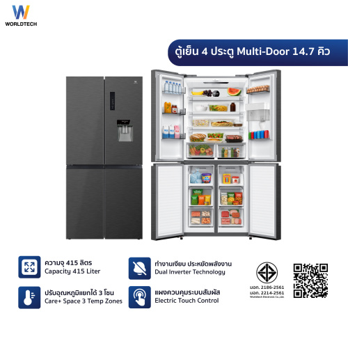 ตู้เย็น Wordltech 4 ประตู Multi-Door ระบบ Inverter 14.7 คิว 415 ลิตร รุ่น WT-MRF-431W