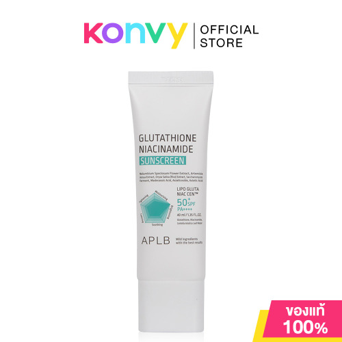 APLB Glutathione Niacinamide Sunscreen 40ml ครีมกันแดด สูตรปกป้องผิวจากรังสี UVA และ UVB ด้วย SPF50+ PA ++++ พร้อมบำรุงผิวให้กระจ่างใส ลดเลือนจุดด่างดำ ด้วยกลูต้าไธโอนและไนอะซินาไมด์ ช่วยให้ผิวเนียนนุ่มและชุ่มชื้น