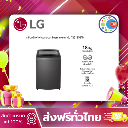 LG เครื่องซักผ้าฝาบน 18 กก. รุ่น T2518VBTB ระบบ Smart Inverter