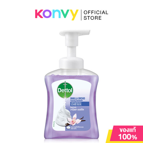 Dettol Foaming Hand Wash Pump Vanilla Orchid 250ml โฟมล้างมือสูตรวานิลลาออร์คิด ช่วยให้มือสะอาดอย่างมีอนามัย ดูสุขภาพดี ด้วยเนื้อโฟมอ่อนนุ่ม กระจายตัวได้อย่างทั่วถึง เเละชำระล้างและลดการสะสมของแบคทีเรีย 99.9% พร้อมช่วยให้มือของคุณนุ่มนวลเเละสะอาดตลอดวัน