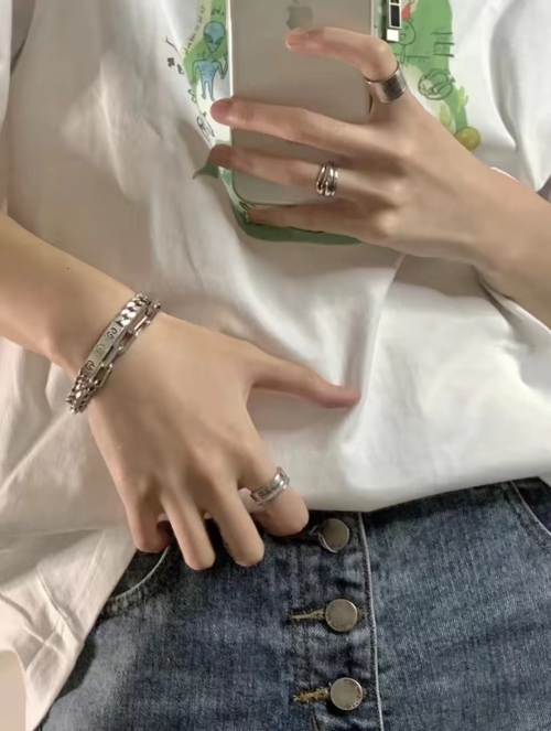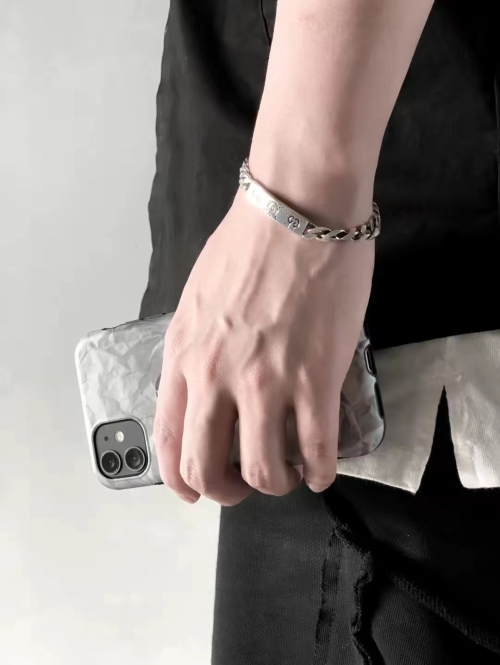 【ขนาด19พร้อมส่งจากไทย】สร้อยข้อมือ Gucci Ghost chain bracelet in silver 455321-J8400-0701 สร้อยข้อมือสีเงิน 21