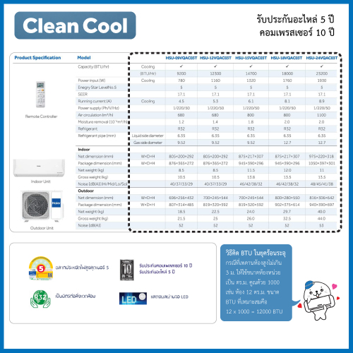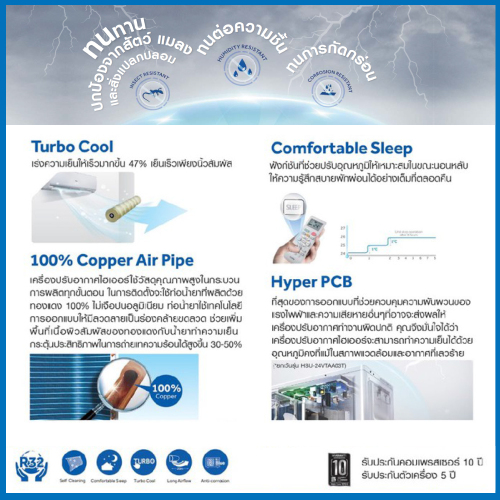 รับประกัน : คอมเพรสเซอร์ 10 ปี, อะไหล่ภายในเครื่อง 5 ปี