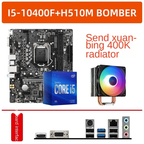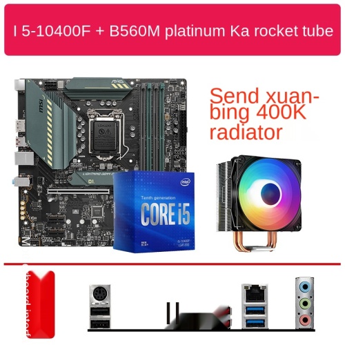 Color Classification: Hot Sale: I5-10400F Boxed + B460m Bomber I5-10400F Boxed + B460m Bomber (Send Xuanbing 400K Radiator) Cost Performance: I5-10400F Boxed + H510m Bomber Explosive Bomb I5-10400F Boxed + H510m Bomber Explosive Bomb (Send Xuanbing 400K Radiator) E-Sports Model: I5-10400F Boxed + B460m Mortar I5-10400F Boxed + B460m Mortar (Send Xuanbing 400K Radiator) E-Sports Wifi: I5-10400F Boxed + B460m Mortar Wifi I5-10400F Boxed + B460m Mortar Wifi (Send Xuanbing 400K Radiator) I5-10400F Boxed + B560m Bazooka I5-10400F Boxed + B560m Bazooka (Send Xuanbing 400K) I5-10400F Boxed + B560m Pro Vdh Wifi I5-10400F Boxed + B560m Pro Vdh Wifi (Send Xuanbing 400K) I5-10400F Boxed + B560m Bomber Explosion Bomb I5-10400F Boxed + B560m Bomber (Send Xuanbing 400K) I5-10400F Boxed + B560m Mortar I5-10400F + B560m Mortar (Free Xuanbing 400K) I5-10400F Boxed + B560m Mortar Wifi I5-10400F + B560m Mortar Wifi (Free Xuanb