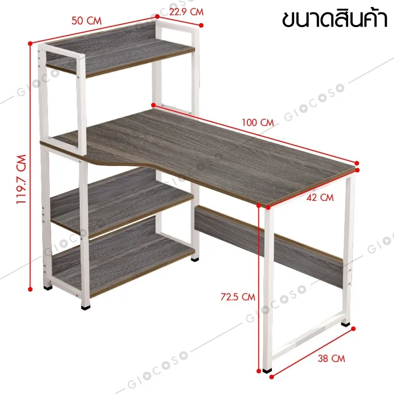 GIOCOSO โต๊ะทำงาน โต๊ะคอมพิวเตอร์ โต๊ะวางคอมพิวเตอร์ โต๊ะไม้ โต๊ะไม้คอมพิวเตอร์ พร้อมกับชั้นวางหนังสือ รุ่น H2 น้ำตาล