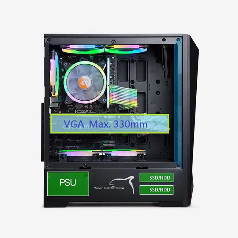Fan.Bottom PSU : 120mm x 2 (ARGB Phantom Lights)