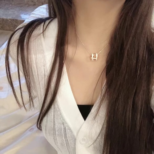สร้อยคอของแท้[TRENDX] HERMES POP H MARRON GLACE(H147991F-55/49) 49 40CM/1.5CM