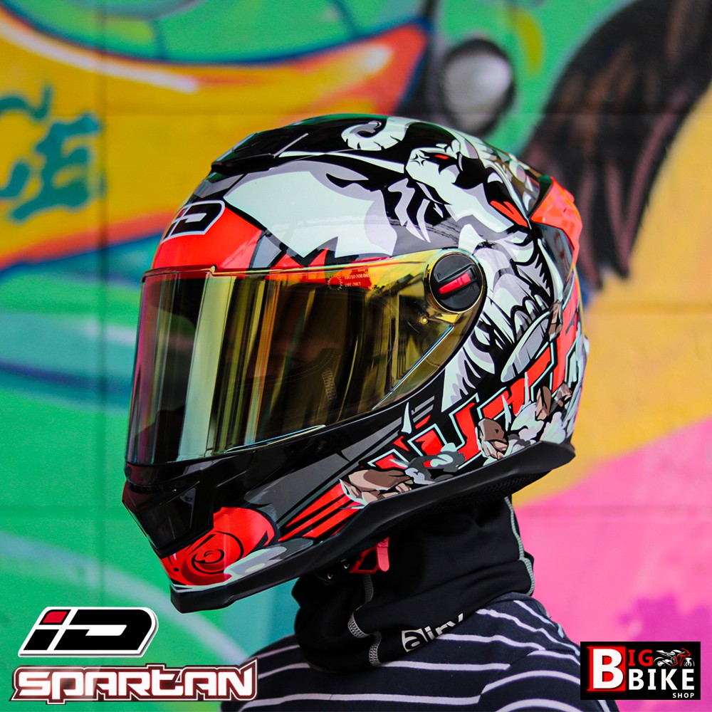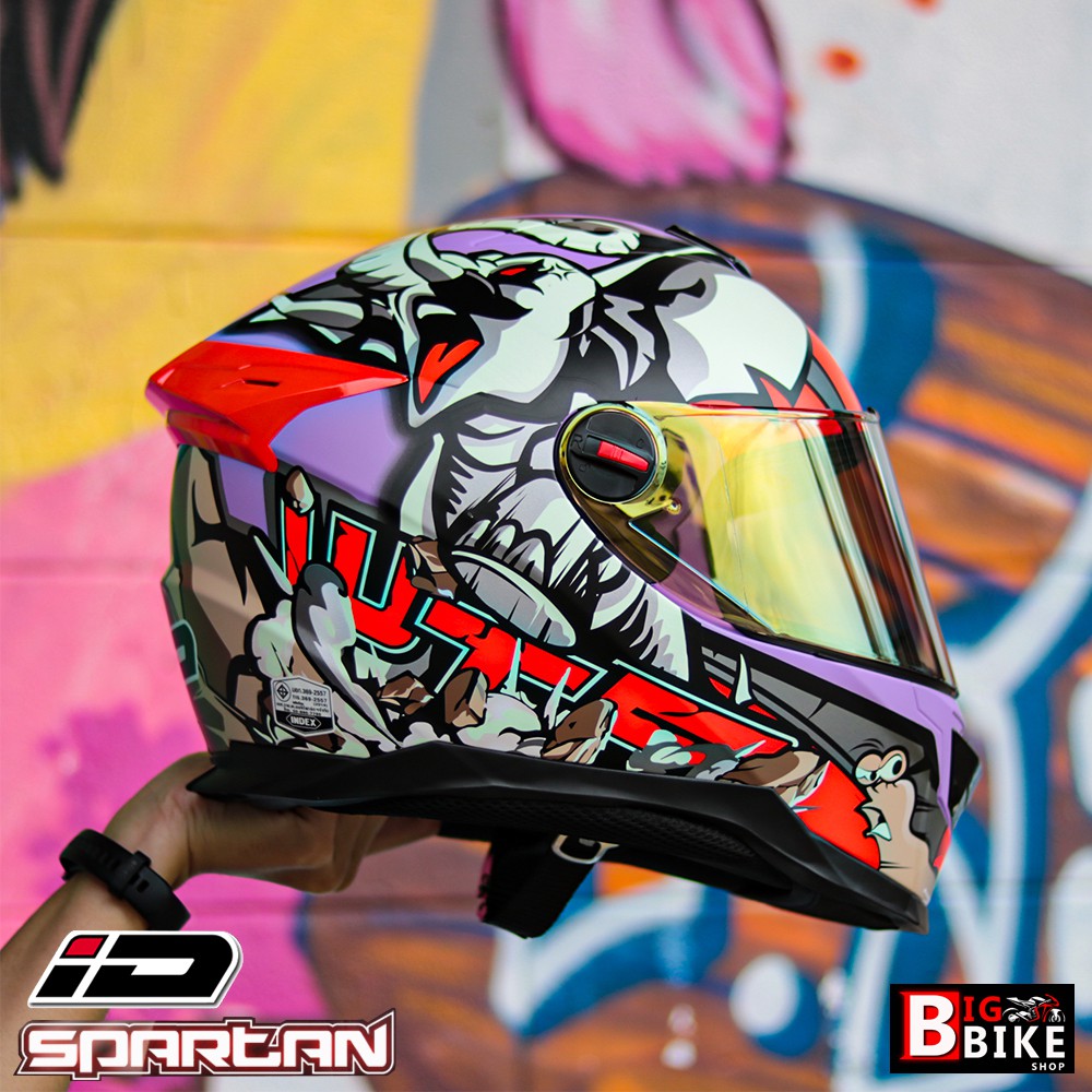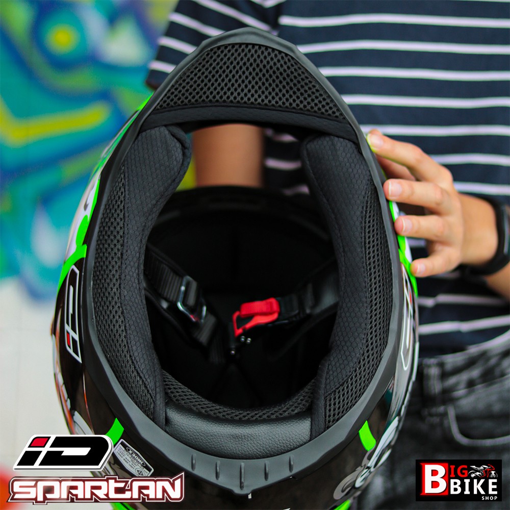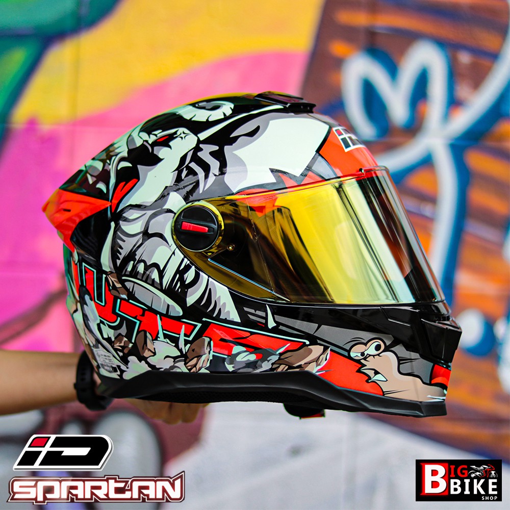 กลไกล๊อคแผ่นเป็นสปริงดึงล๊อค เพิ่มความมั่นใจเมื่อขับขี่ด้วยความเร็วสูง ป้องกันแผ่นหน้าหมวกเปิดเองจากแรงลมปะทะ