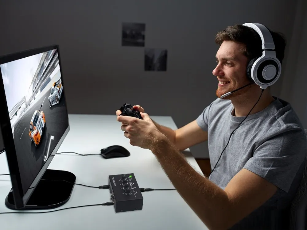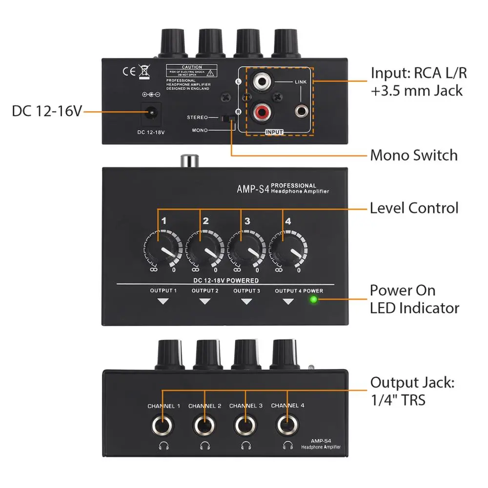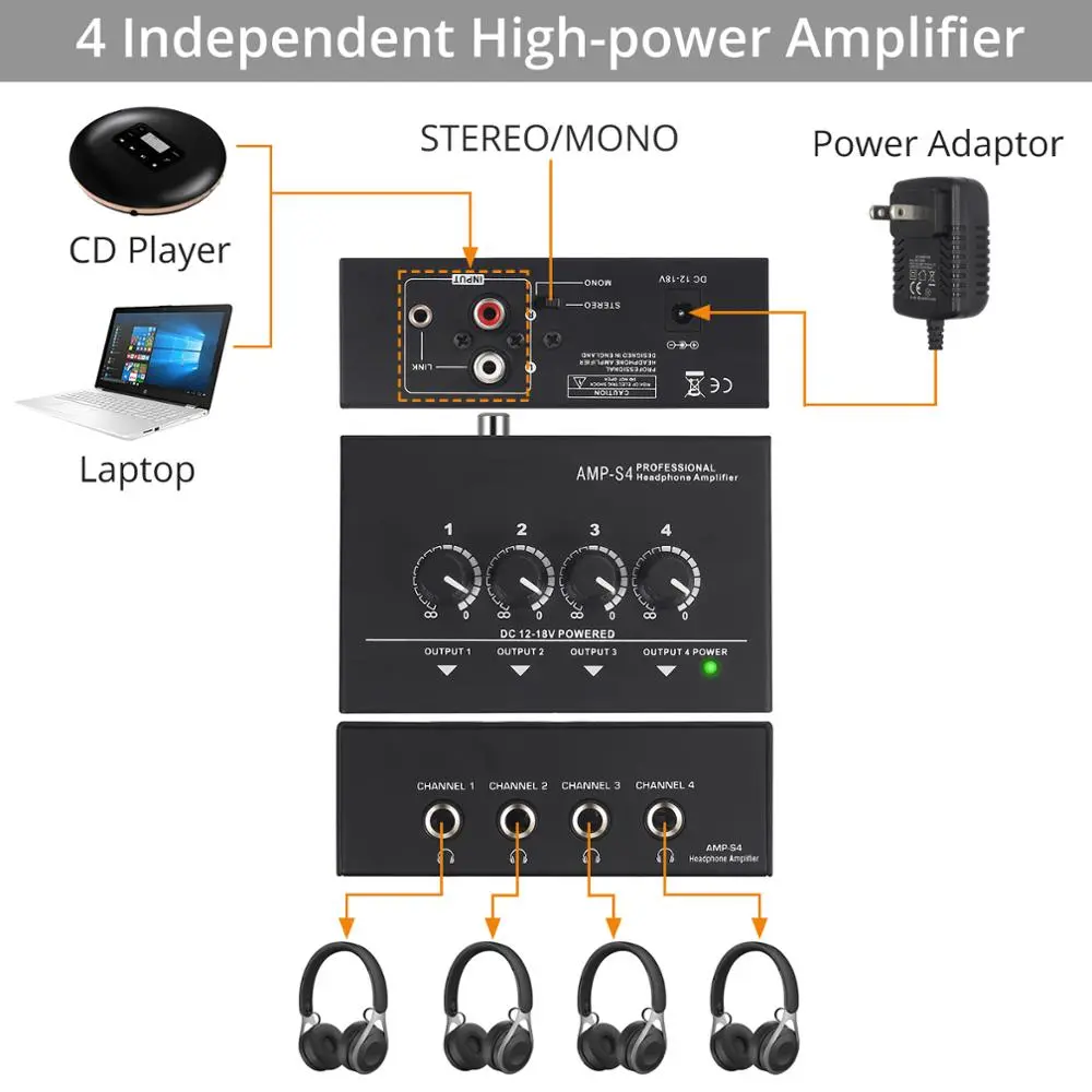 2.Share a single stereo source with up to 4 pairs of headphone.