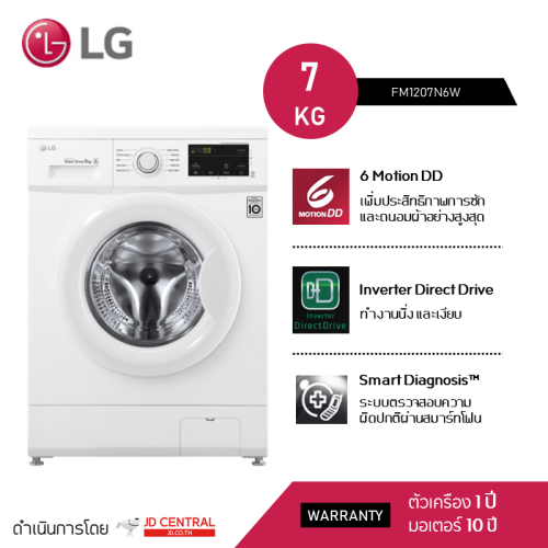LG Washing Machine Front load 7kg [FM1207N6W]เครื่องซักผ้าฝาหน้า,Smart Inverter Direct Drive LG FM1207N6W