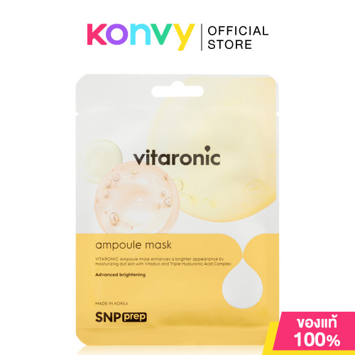 SNP Prep Vitaronic Ampoule Mask 25ml เผยผิวเปล่งประกายอย่างเป็นธรรมชาติด้วยแผ่นมาสก์หน้า ด้วยสารสกัดจากผลอ่อนของส้มสามใบ ผสาน Vita Complex วิตามิน C วิตามิน B5 และกรดไฮยาลูโรนิค 3 อนุพันธ์ ช่วยฟื้นฟูผิวให้สว่างกระจ่างใสขึ้น ผิวนุ่มชุ่มชื้น