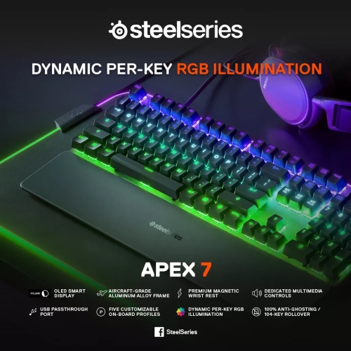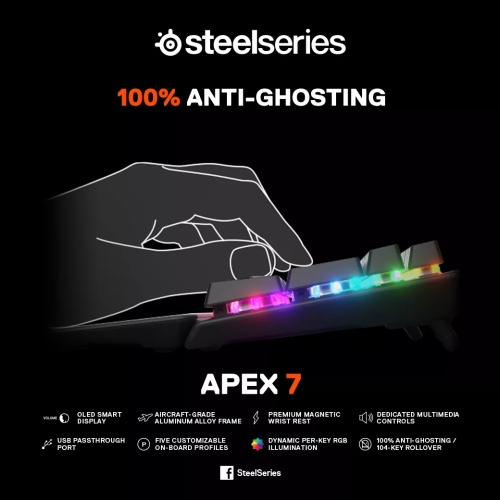รายละเอียดสินค้า SteelSeries คีบอร์ดเกมมิ่ง RGB รุ่น Apex 7 (Keycap Thai) Blue Switches