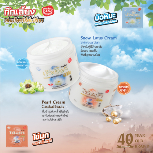 ก๊กเลี้ยง ครีมไข่มุก อันความงามที่น่าหลงใหลของหญิงสาวหลายท่านในตำนานนั้น มักมาพร้อมกับความลับในการประทินโฉมเพื่อคอยดูแลผิวให้อ่อนเยาว์และขาวนวลเนียนอยู่เสมอ ครีมไข่มุกก๊กเลี้ยง ครีมยอดนิยมของชาวจีนและฮ่องกง ที่นำอานุภาพอันเลื่องลือของไข่มุกจากแหล่งน้ำคุณภาพสูง เหมาะอย่างยิ่งสำหรับผู้มีปัญหามากเกี่ยวกับฝ้า กระ ริ้วรอย จุดด่างดำ และผิวที่มีปัญหาการร่วงโรย ลดสีผิวที่หมองคล้ำสะสมเช่น ฝ้า ให้ขาวธรรมชาติอย่างสมบูรณ์แบบ พร้อมผสมผสานคุณค่าจาก ฉั่งฉิก ที่ช่วยชะลอการผลิตเมลานินในชั้นผิว ทำให้เนื้อเยื่อเสื่อมช้าลงเมื่ออายุมากขึ้น และคุณสมบัติอันโดดเด่นจาก ตังฉั่งเช่า ที่ซึมลึกเข้าบำรุงผิวให้ตึงกระชับ พร้อมกระตุ้นการไหลเวียนของเลือดลมในผิวที่ผิดปกติให้ทำงานดีขึ้น ตามหลักวิจัยของแพทย์แผนจีนเกี่ยวกับการต่อสู้ปัญหาฝ้า ด้วยการสร้างสมดุลย์ผิวให้แข็งแรงจากภายในก่อน แล้วคุณจะต้องทึ่งกับครีมดูแลผิวจากสาเหตุปัจจัยภายในโดยเฉพาะที่ไม่เคยพบมาก่อน