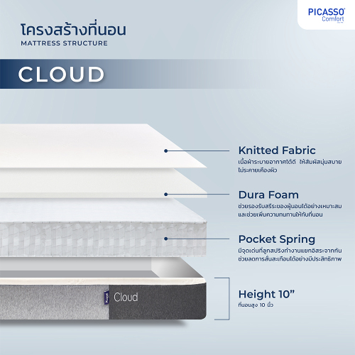 Picasso ที่นอนพ็อกเก็ตสปริง+ไฮบริดโฟม รุ่น CLOUD หนา 10 นิ้ว
