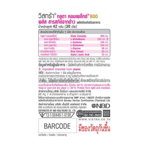 ชื่อสินค้า | Vistra Gluta Complex 800 Plus Rice Extract |