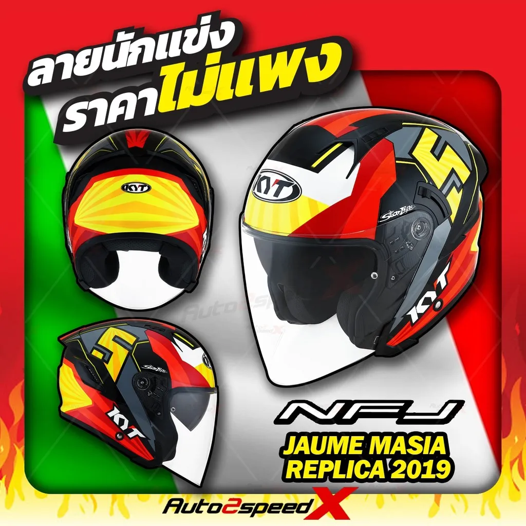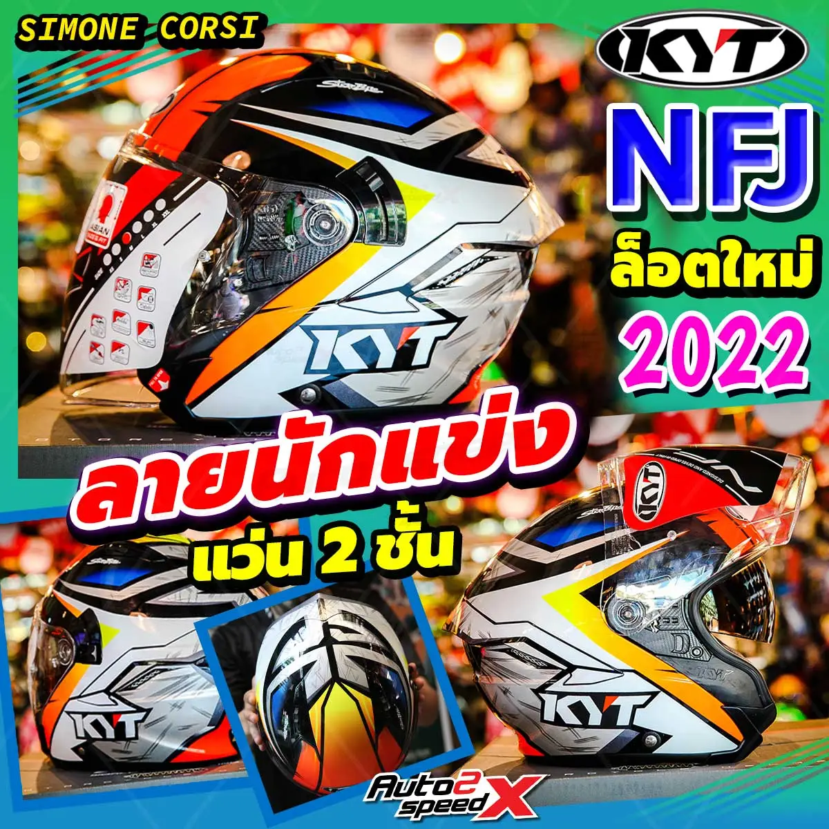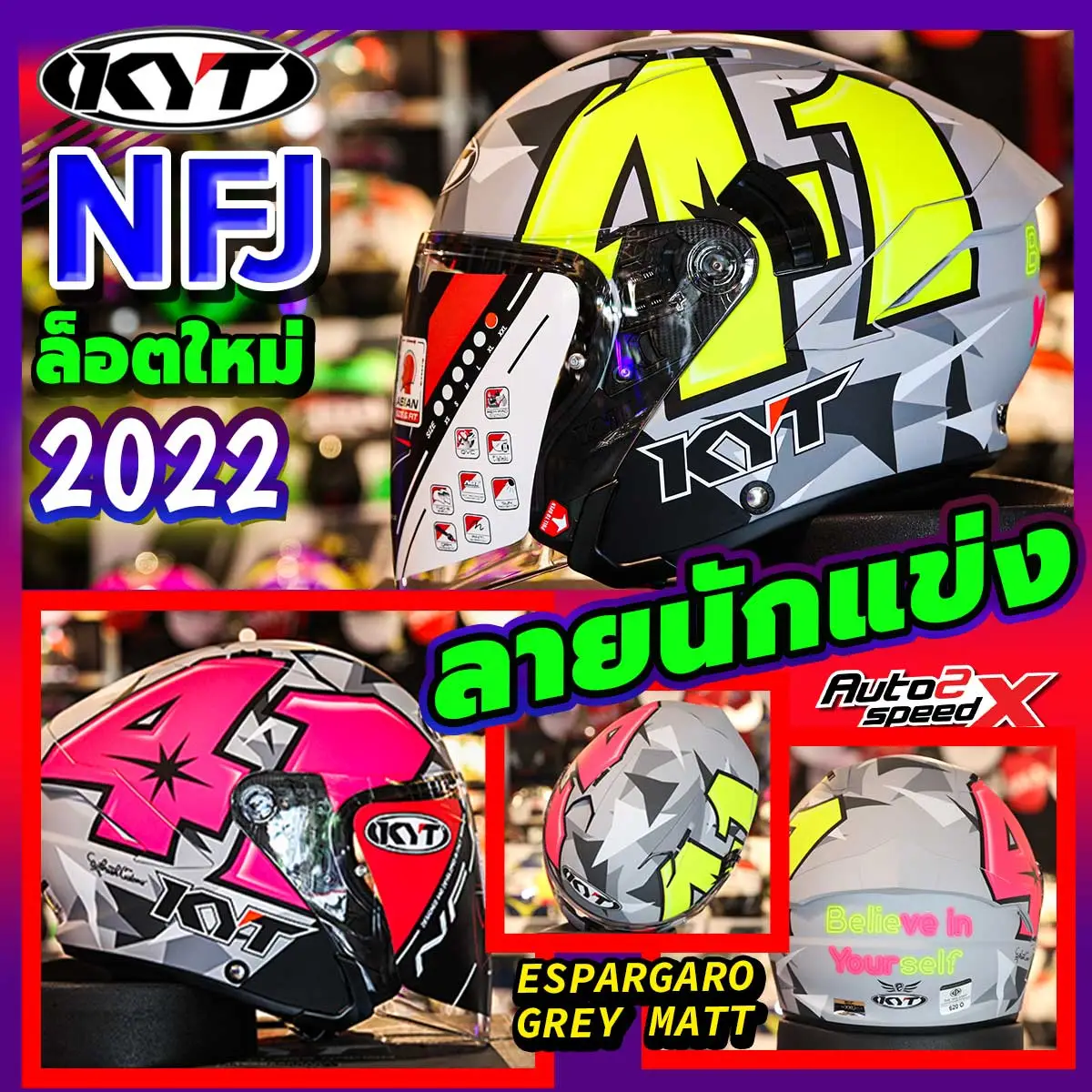 • หมวกกันน็อค KYT NFJ OPEN FACE ลายนักแข่ง 2022 แถมฟรีโม่ง LOVE BIKE