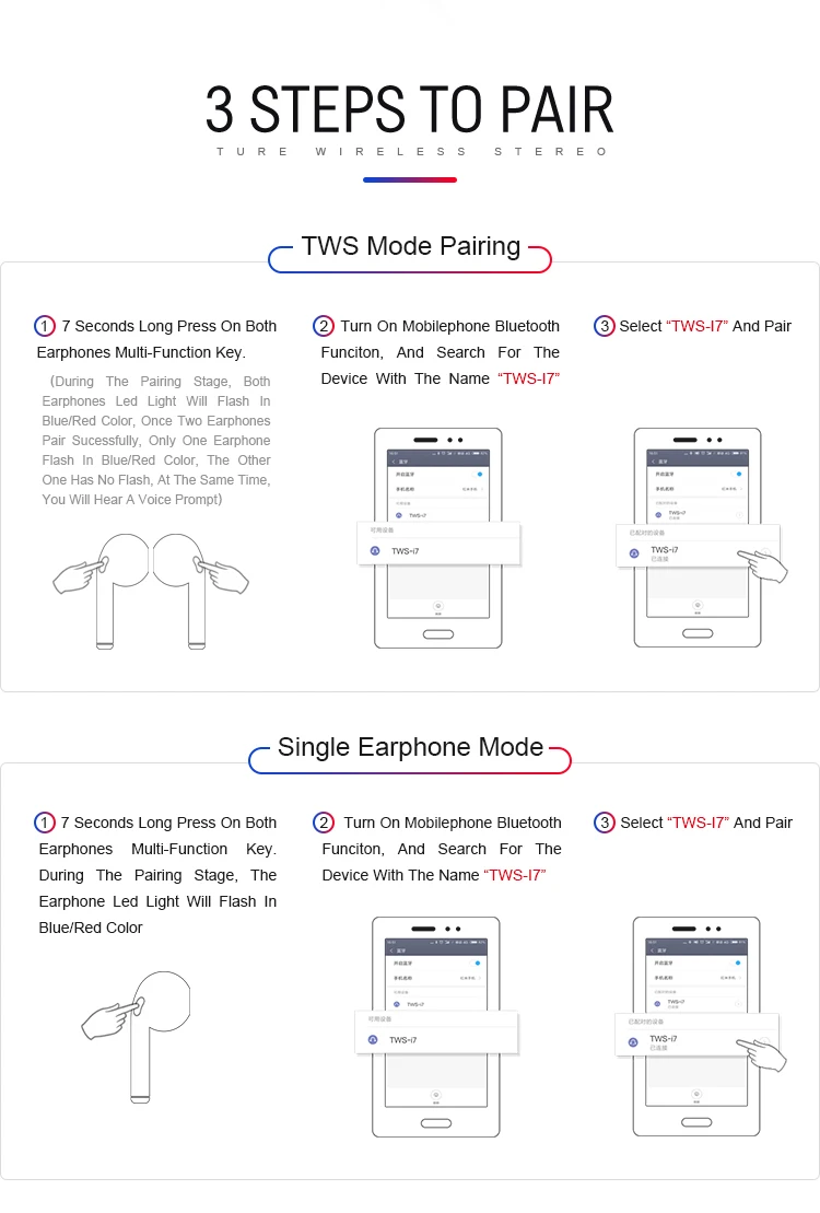 2 x i7s TWS หูฟังบลูทูธ (ซ้ายและขวาหูฟัง)