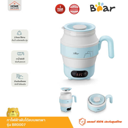BEAR Electric Foldable Kettle กาต้มน้ำ กระติกน้ำร้อน พับได้ แบร์ รุ่น BR0007 พกพาง่าย สะดวก น้ำร้อนเร็ว แถมฟรีถุงผ้า
