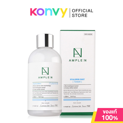 Coreana Lab Ample N Hyaluron Shot Toner 220ml โทนเนอร์สูตรน้ำ ช่วยขจัดสิ่งสกปรกตกค้างบนผิว ลดความมันและช่วยกระชับรูขุมขนให้ดูเล็กลง พร้อมด้วยส่วนผสมจากไฮยารูลอนที่ช่วยเติมเต็มความชุ่มชื้น ให้ผิวสะอาดหมดจด อิ่มน้ำ แลดูอิ่มเอิบนุ่มฟูสุขภาพดี