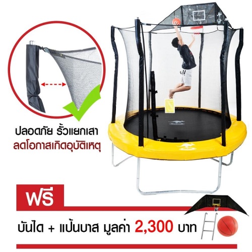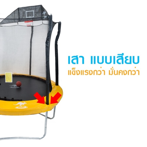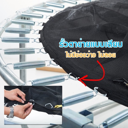 - แผ่นผ้ากระโดด คือวัสดุ เพอร์มาทรอน (Permatron) นำเข้าจากอเมริกา เป็นวัสดุที่หนา และทนทานใช้เทคโนโลยีขั้นสูงทำให้มีความเหนียวและยืดหยุ่นปลอดภัย สามารถกันน้ำและป้องกันยูวีได้
