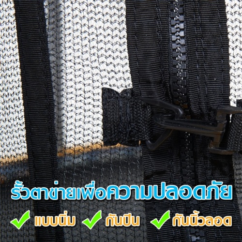 - ตาข่ายอย่างดี ที่มีความเหนียวแน่น ทนทาน เพื่อความปลอดภัย ทางเข้า-ออกเป็น ซิบที่มีความแข็งแรงทนทานเหนียวและยืดหยุ่นปลอดภัย สามารถกันน้ำและป้องกันยูวีได้