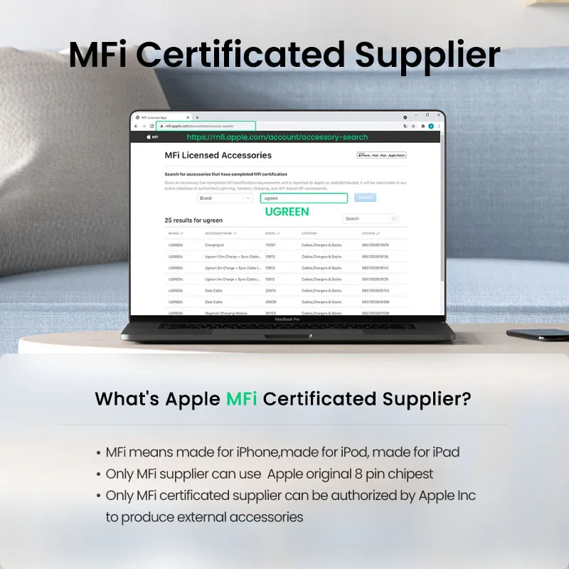 //- สาย UGREEN USB C to Lightning ผลิตจากชิปดั้งเดิมให้แรงดันไฟฟ้าที่ปลอดภัยและเสถียร
